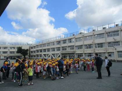 今日は1年生が歩いて駒沢公園まで校外学習に出かけます。