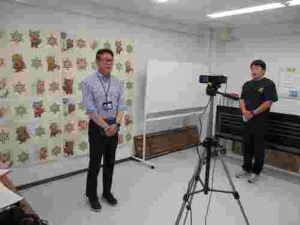 始まるにあたり、昼の放送の時間を使って、プール開きを行いました。