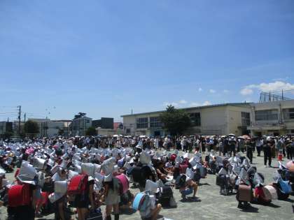 大地震が発生し、余震の恐れがあるという想定で、メールで引き取りのお願いをして、引き取りの方に安全・確実に引き渡す訓練です。