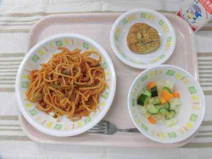 スパゲッティナポリタン じゃが芋サラダ 紅茶のスコーン 牛乳
