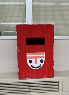 移動教室間に設置されているポストは、鶴巻小の卒業生が制作したものを使用しています。