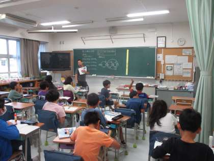 4年生は、習熟度別に分かれて算数の小数について学習していました。位を合わせてどちらの方が大きいか、ノートにまとめたり、友達と相談したりして考えていました。