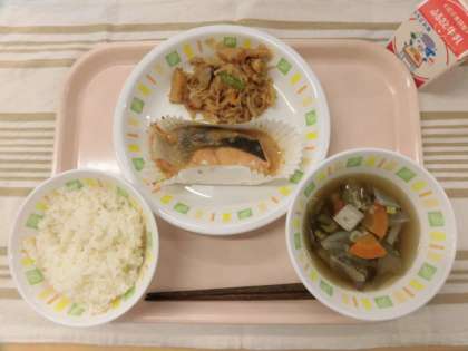 ごはん 鮭のみそマヨネーズ焼き けんちん汁 切り干し大根の炒め煮 牛乳