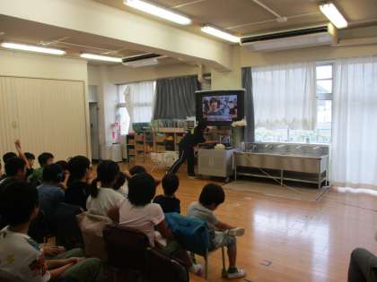 六組では三宿小・山崎小・旭小の友達と4校交流会を行いました。計画では旭小まで行き、対面で行う予定でしたが、雨天のためオンラインでの実施となりました。画面越しでしたが、他の友達と自己紹介をしたり、話したりすることができました。