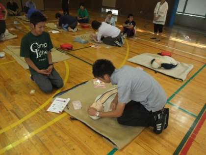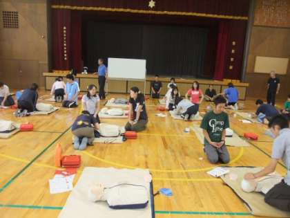 救命法の講習に取り組みました。プールを安全に実施することは、