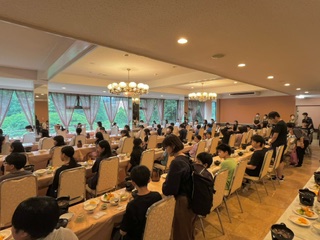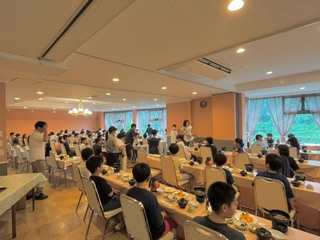 今日は、たくさん汗をかきました。入浴して、さっぱりした後、夕食です。みんなよく食べています。