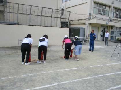 今日の2時間目、理科室から出火という想定で9月の避難訓練を行いました。