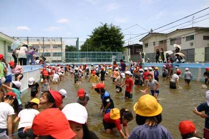 1時間目から1年生が、眼科検診を済ませて、4時間目は2年生がヤゴとりをしました。