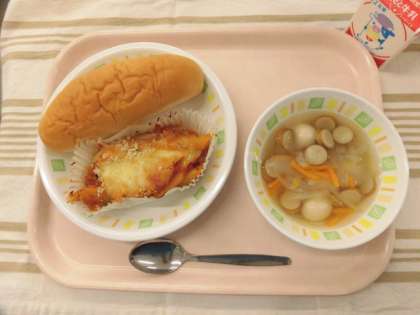 ミルクパン ペンネグラタン うずら卵入りオニオンスープ 牛乳