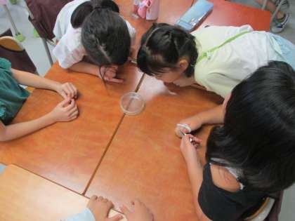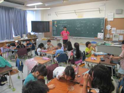 2年生は生活科で「アリ」の観察を教室でしていました。各グループでアリをよく見て、動き方や体のつくりについて互いに気付いたことを発表していました。自分たちが気付かなかったことを他のグループが発表すると、「えっ?」「どこどこ」と反応する姿がとても印象的でした。