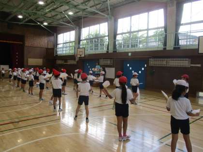 今日、3年生ははねこ踊り保存協会の方々をゲストティーチャーにお招きして、はねこ踊りを教わりました。足の動かし方や両手でもった扇子の動かし方など、一つ一つ丁寧に教わることができました。