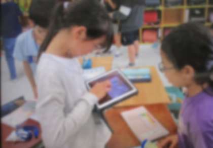 4年生の外国語活動では、アルファベットの小文字を探しました。