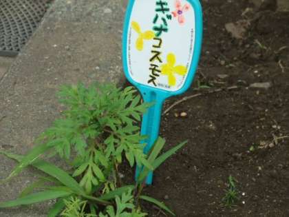 校長室の前には、昨年のこぼれ種から黄花コスモスが育っています。