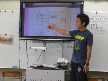 子どもたちがとても楽しみにしている河口湖宿泊学習がいよいよ来週に迫ってきました。宿泊学習の事前学習として、しおりをTVに大写しにしてもらい、スケジュールに合わせて荷物の出し入れをすることを学びました。