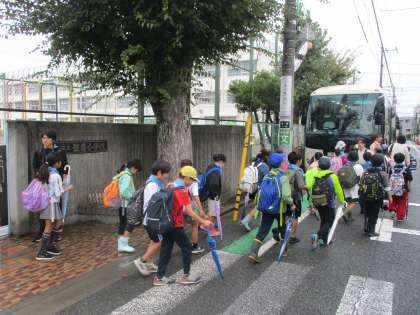 社会で学習している世田谷区のことを学習するため、九品仏浄真寺や世田谷市場などを見学します。あいにくの雨模様ですが、みんな嬉しそうに出かけていきました。