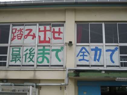 無事、全学年リハーサルを終え、給食後、5・6年生が運動会の会場準備を行いました。