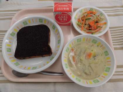 ココアトースト さつま芋シチュー 大根サラダ 牛乳