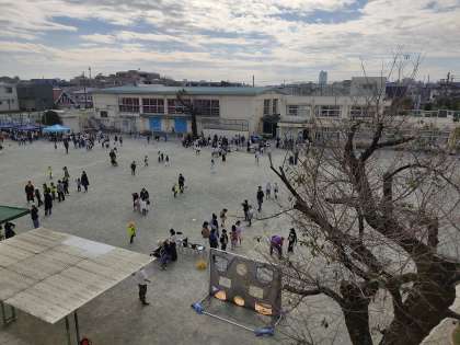 本日、12:00〜15:00まで校庭にて、PTA遊び場まつり係と遊び場開放運営委員会の共催の遊び場まつりを行っております。