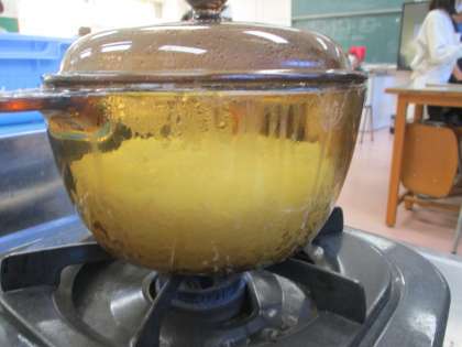 今回は炊飯器を使わずに鍋でお米を炊きます。ガラス鍋で炊くため、お米の様子の変化がよくわかりました。