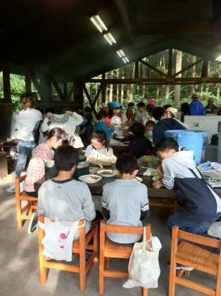 練習のかいがあって美味しいカレーができました。今年の子どもたちは、大変手際が良く、短時間で食べられるようになりました。サアこれから後片付け、その後は、楽しみにしているキャンプファイアーです。