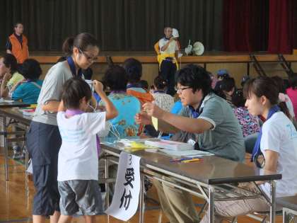 7月14日(土)午後、防災スタンプラリー(避難所運営訓練・防災訓練・避難所体験)を行いました。
