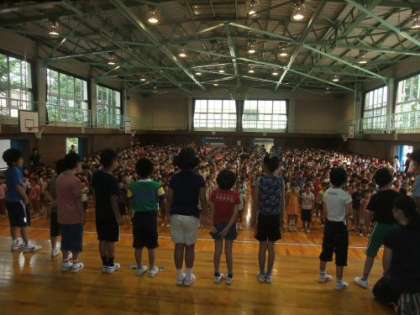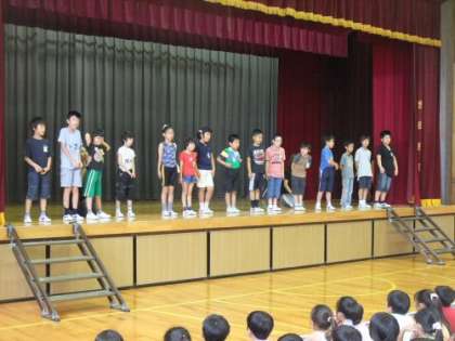 6組の子どもたちの元気な声が体育館の中に響き渡りました。