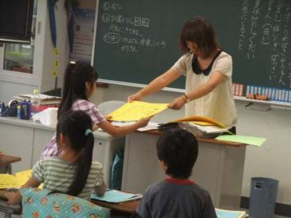入ります。今日は、教室の掃除や草取りをしながら1学期間の