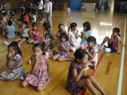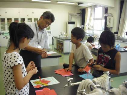 7月26日午前中、プールの合間を縫って、“わくわく理科実験(低学年・高学年)”がありました。弦巻中の先生方が理科の出前講座を開いてくださいました。今年が二回目、とくに低学年の講座には100名ほどの応募があり、大盛況でした。急きょPTAの方々に応援をお願いし、子どもたちは大いに楽しむことができました。