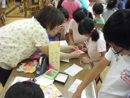 7月30日のワークショップは“グラスアート”(図工室)と“むかしのあそび(ランチルーム・和室)”の2つの講座がありました。