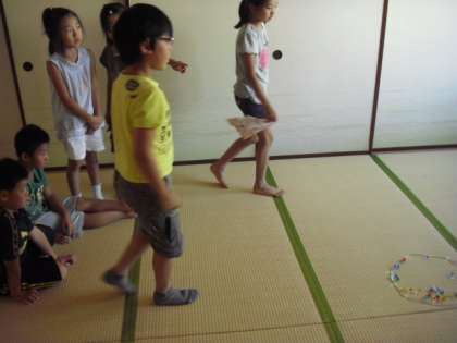 昔の遊びは2つの部屋にたくさんのコーナーができました。ビー玉や、ベーゴマ、紙でっぽう、色染め、ミニうちわづくりなど、いろいろな遊びを思う存分楽しみました。
