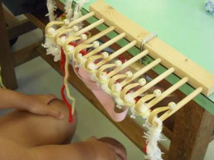 家庭科室では“指編み機を使ってネックウォーマーをつくろう”がありました。指編み機の使い方に慣れるとすいすいとできるようになります。どの子も熱心にやり、全員見事完成。
