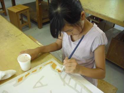 図工室での“ろうけつ染めでバンダナをそめよう”は今年初めての講座でした。長い時間になりましたが、やけどをしないように気をつけながら、作業し、お気に入りの作品ができました。