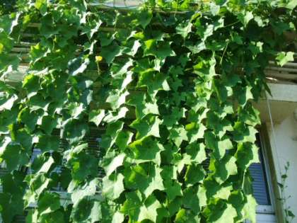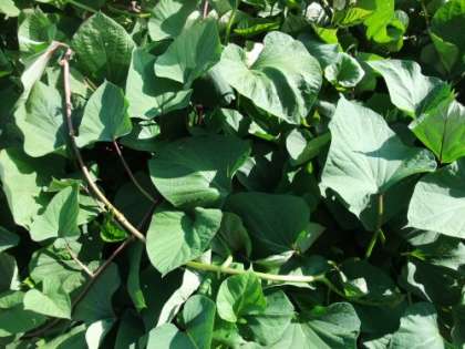 2年生の植えたサツマイモ、4年の植えたヘチマが大きく育っています。