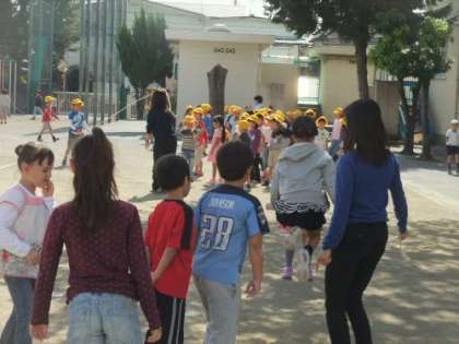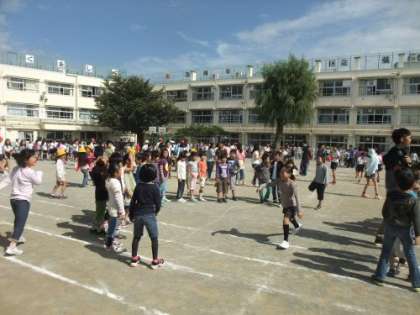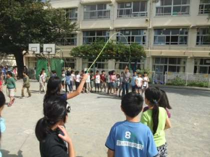 先生方も全員外に出て、子どもたちの長縄跳びに協力をしています。