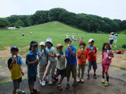 芝生の上を転がったり、ソフトクリームをおいしく食べました。