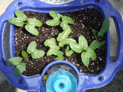 1年生の植えたアサガオが、芽を出しました。