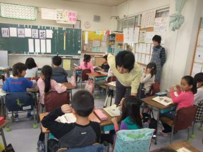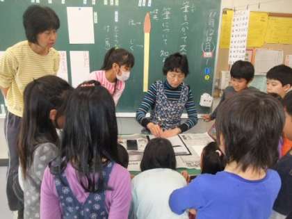 筆に触るのが初めての子どももいます。興味津々で筆に触っていました。