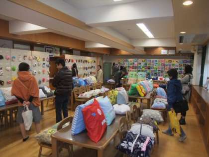 ランチルームでは高学年の家庭科の作品を、家庭科室はPTAの