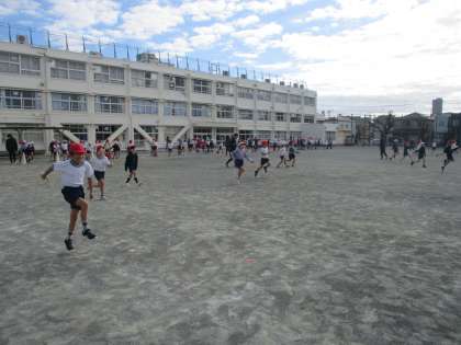 1,2時間目は3年生が講師の先生をお招きしてオリパラ体験を行いました。校庭を目一杯使って、走ったり跳んだりしました