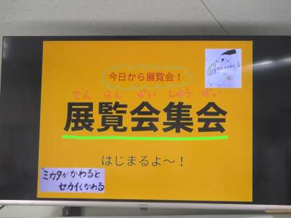 今朝の集会の時間は展覧会集会ということで、各学年の作品についての放送が行われました。