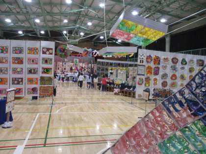 体育館・ランチルームいっぱいに飾られている作品を3年生が鑑賞していました。