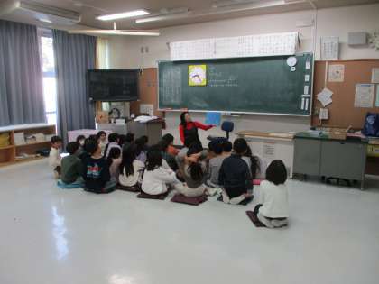 保護者の方々の読み聞かせをにこにこしながら子どもたちは聞いていました。
