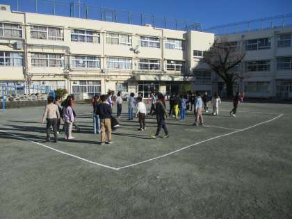 クラスごとにドッジボールや鬼ごっこなど、校庭をいっぱいに使って体を動かしました。