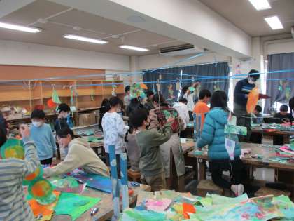 11日、13日に引き続き本日も世田谷美術館の方をお招きして出前授業を行っていただきました。美術館を飾る作品づくりに取り組んでいます。