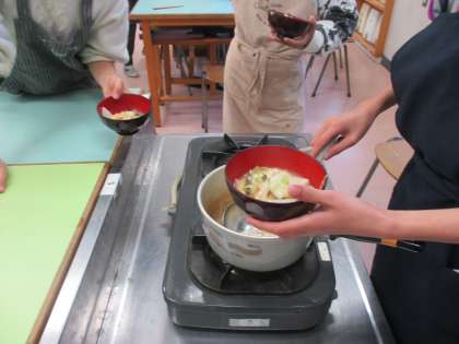 前回のご飯の調理に続いて、味噌汁の調理実習でした。