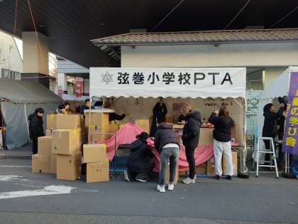 弦巻小学校PTAもお店を出すということで、朝早くからPTAの方々や教職員が設営を行いました。品物を提供していただいた保護者の皆様、地域の皆様、どうもありがとうございました。