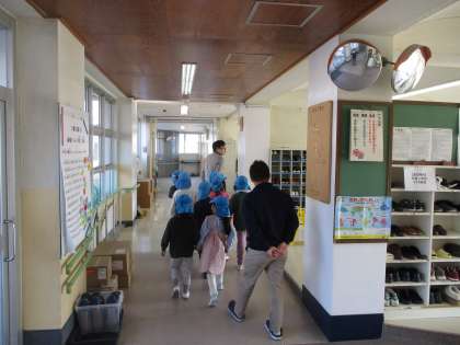 学校近隣の保育園に通う、この4月から小学校に入学する園児が、学校見学に来ています。普段生活している保育園とは全然違う小学校の様子に驚きながら校内を回りました。見学後、感想を聞くと「楽しみ!」と返してくれました。4月の入学を待っています!