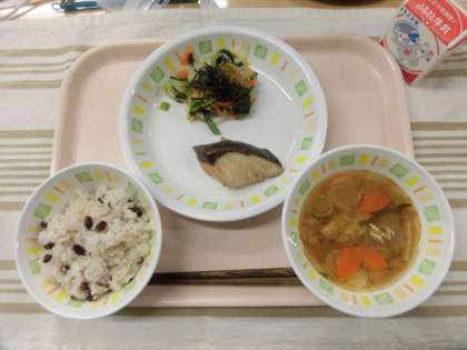小豆ごはん ブリの照り焼き ねぎと油揚げのみそ汁 磯和え 牛乳