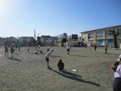 校庭では3年生が二人一組になって短なわに取り組んでいました。