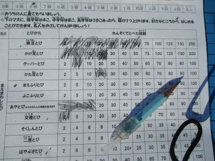 色々な跳び方や回数など、跳べるようになったら、なわとびカードに記入していきます。